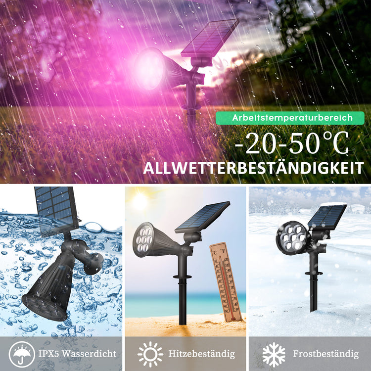 Die Zalap Solar Spot Lights Outdoor bestehen aus robustem und hochfestem Gusseisenmaterial, haben eine wasserdichte Bewertung von IP65 und können vielen Arten von extremen Wetterbedingungen standhalten, wie Schnee, Frost, hohe Temperaturen und Regen usw.