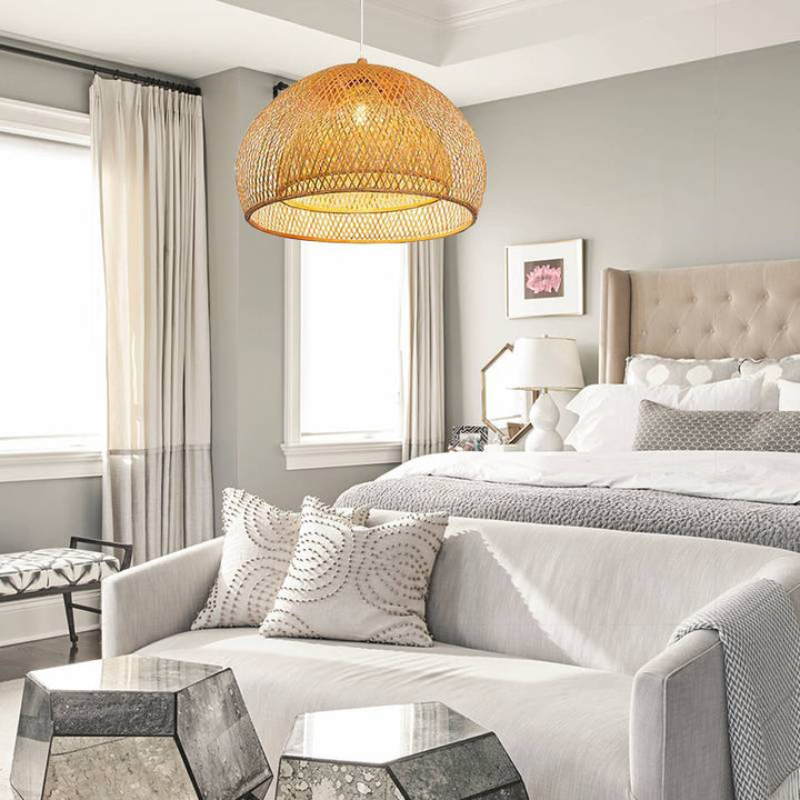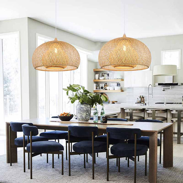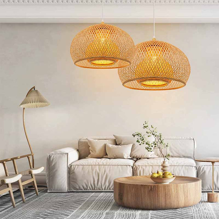 Hängende Deckenleuchte aus Bambustrommel gewebte Kronleuchter Lampenschirme
