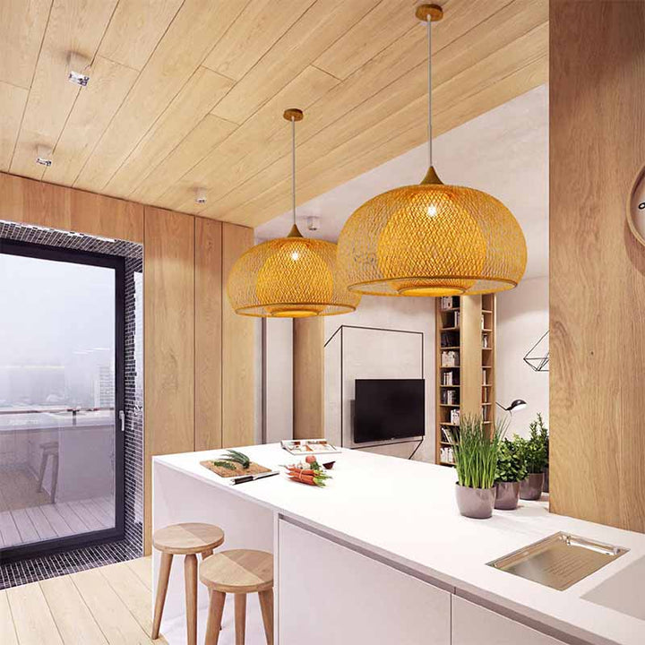 Asiatische Dekor Bambus handgefertigte gewebte Hängelampen Hängelampe