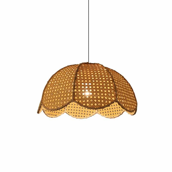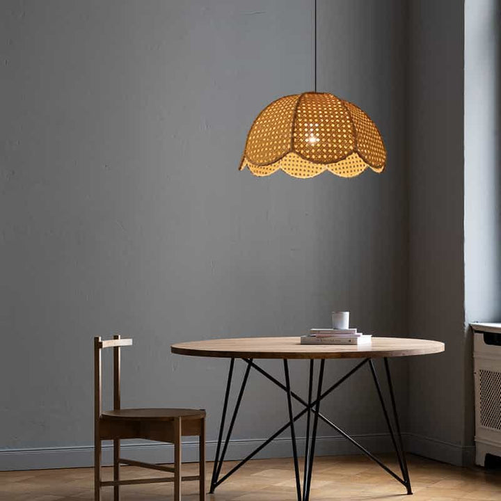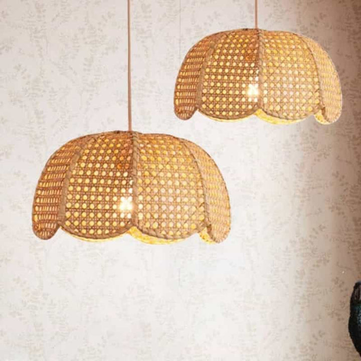 Handgewebte Rattan-Pendelleuchte in Blumenform