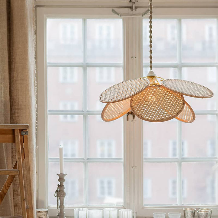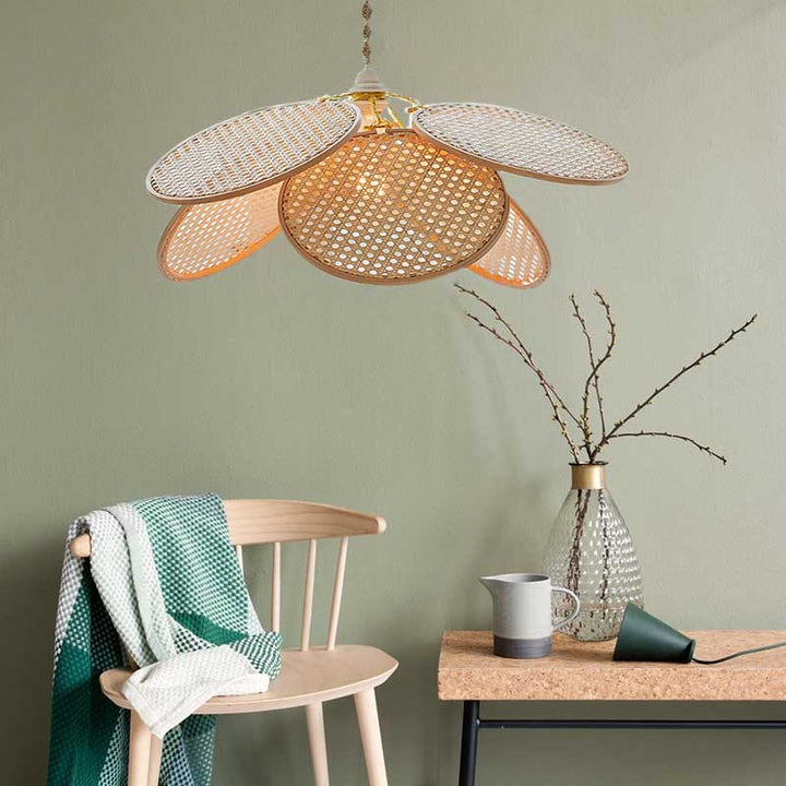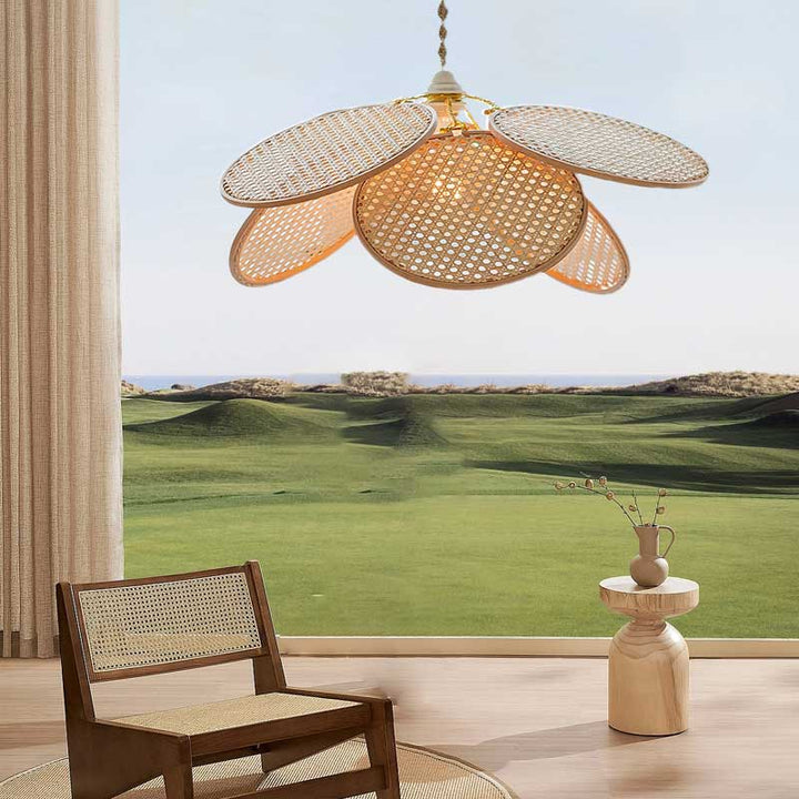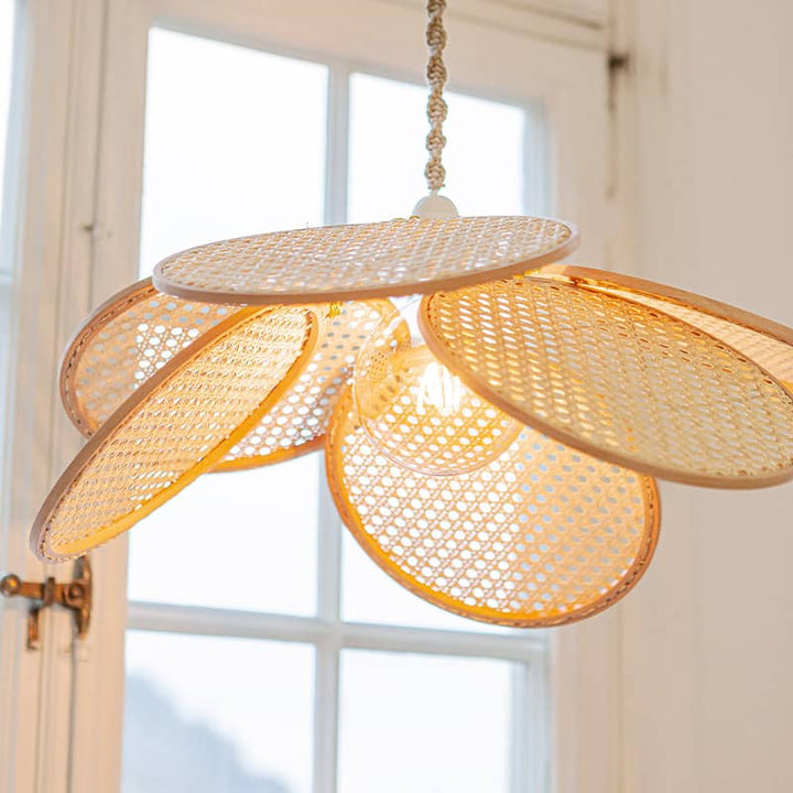 Japanischer Wabi-Sabi Retro-Kronleuchter aus Rattan mit Blütenblättern