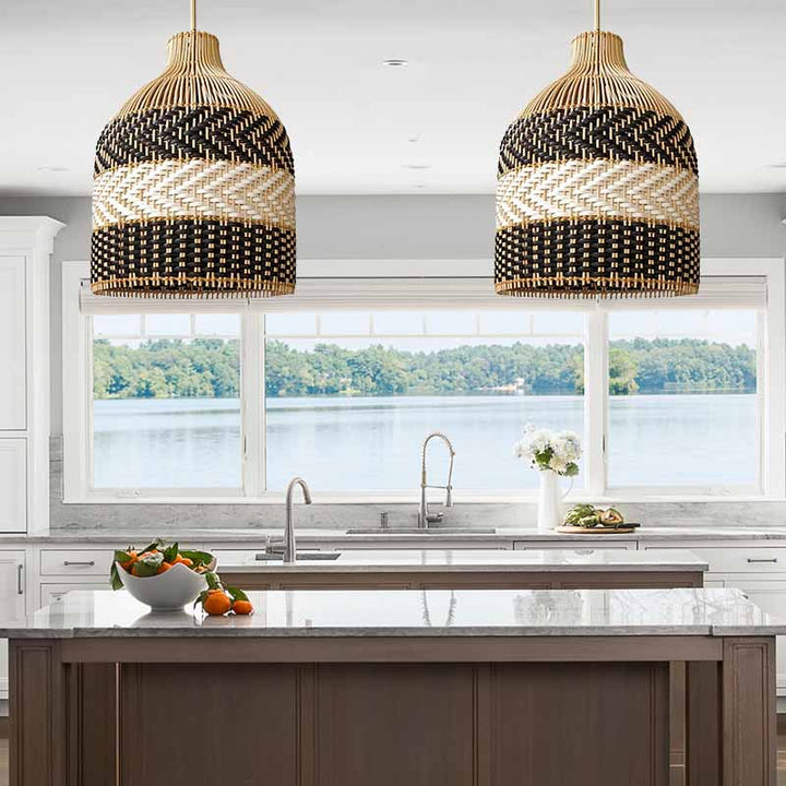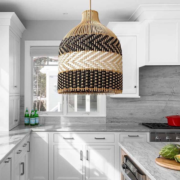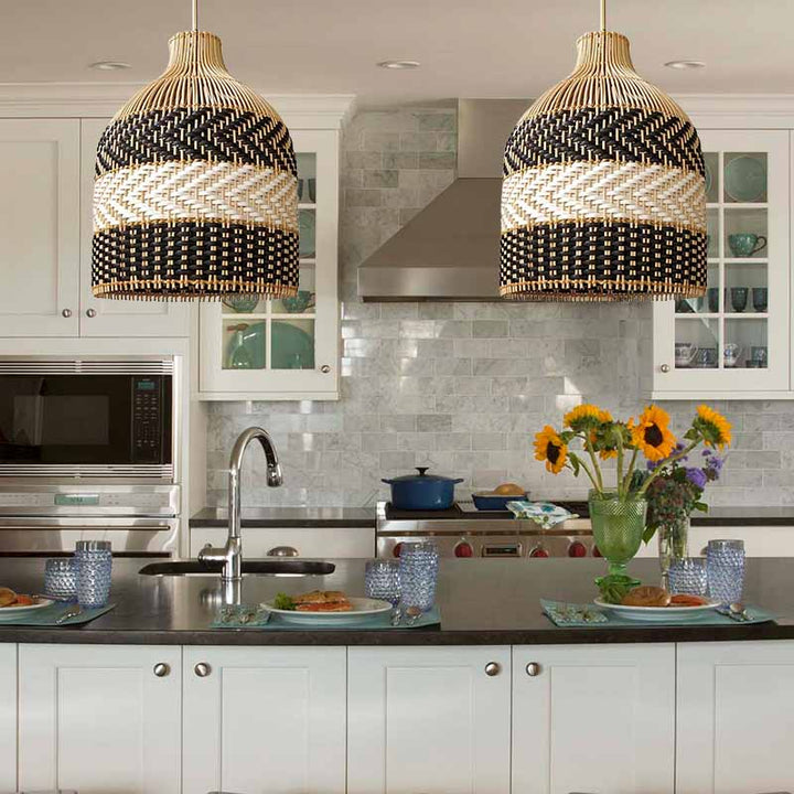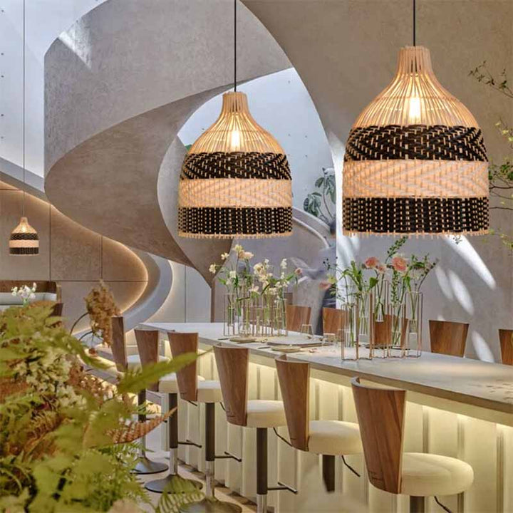 - Zeitgenössische Rattan Pendelleuchte Bambusleuchte. Ein Küstendesign Trends in Rattan und Bambus Leuchte. Ein modernes Design aus der Mitte des Jahrhunderts.