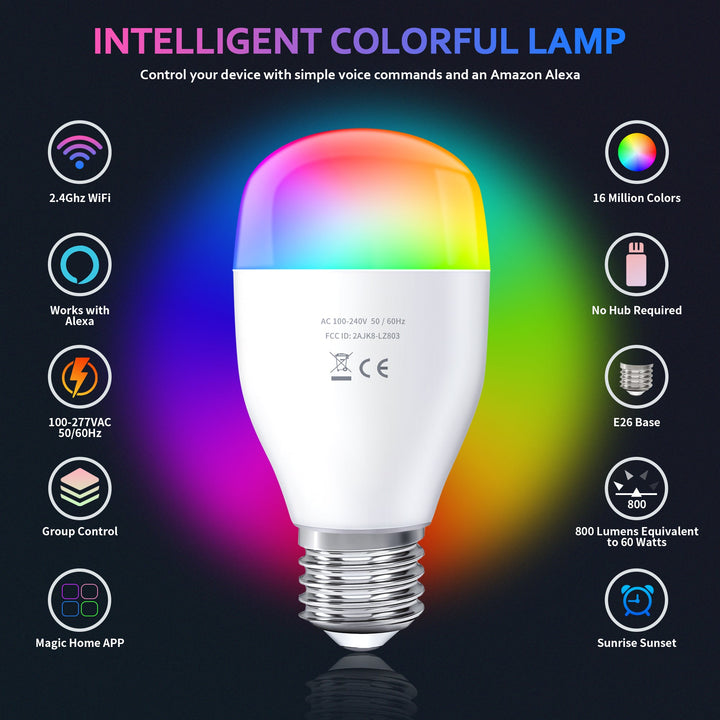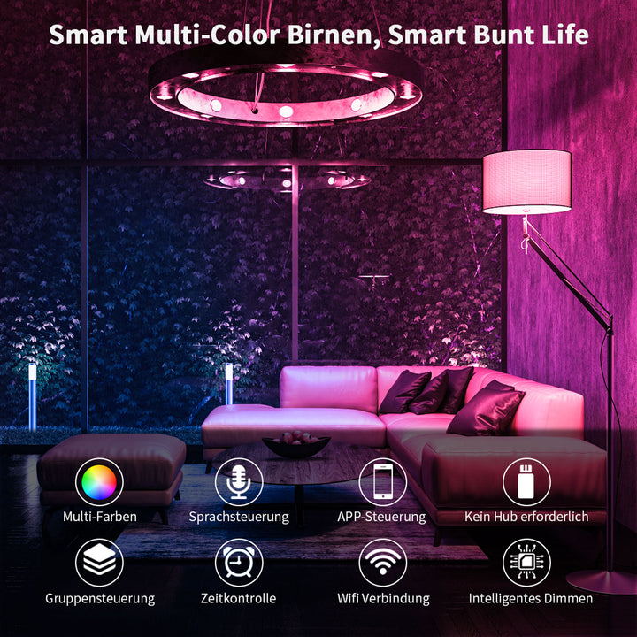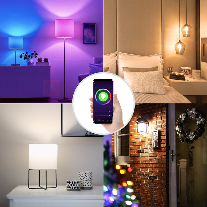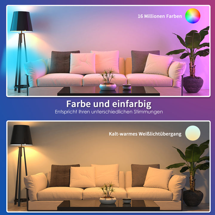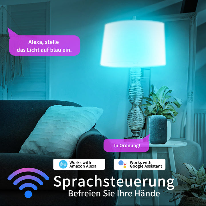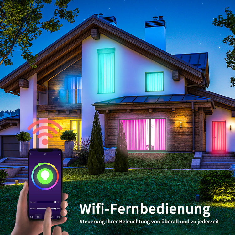 Halten Sie die Verbindung der WiFi-Smart-Lampe mit Ihrem Heimnetzwerk (Unterstützt nur 2,4-GHz-WLAN), Sie können die Smart-Lampe über Ihr Smartphone fernsteuern, wenn Sie das Haus verlassen oder auf Reisen sind.